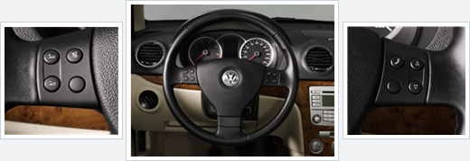 | LAVIDA朗逸的三辐式方向盘上集成了音量调节、电台/曲目选择、静音、一键式电话操作等6大功能,驾驶者手不离方向盘就可轻松操作,大大提高了驾驶的安全和乐趣。同时,方向盘高度可配合驾驶员座椅进行六向调节,从容应对长时间行驶旅程。 |